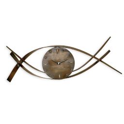 Bent metal wall clock in bronze.